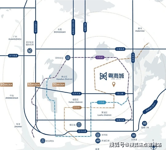 中山粤海城是翠亨新区马鞍岛的国企开发滨海住宅,深中通道旁精装现房,主打 79-123㎡二至三房,总价约 105-270 万,深中通勤与一线江景是核心亮点。以下是详细信息: