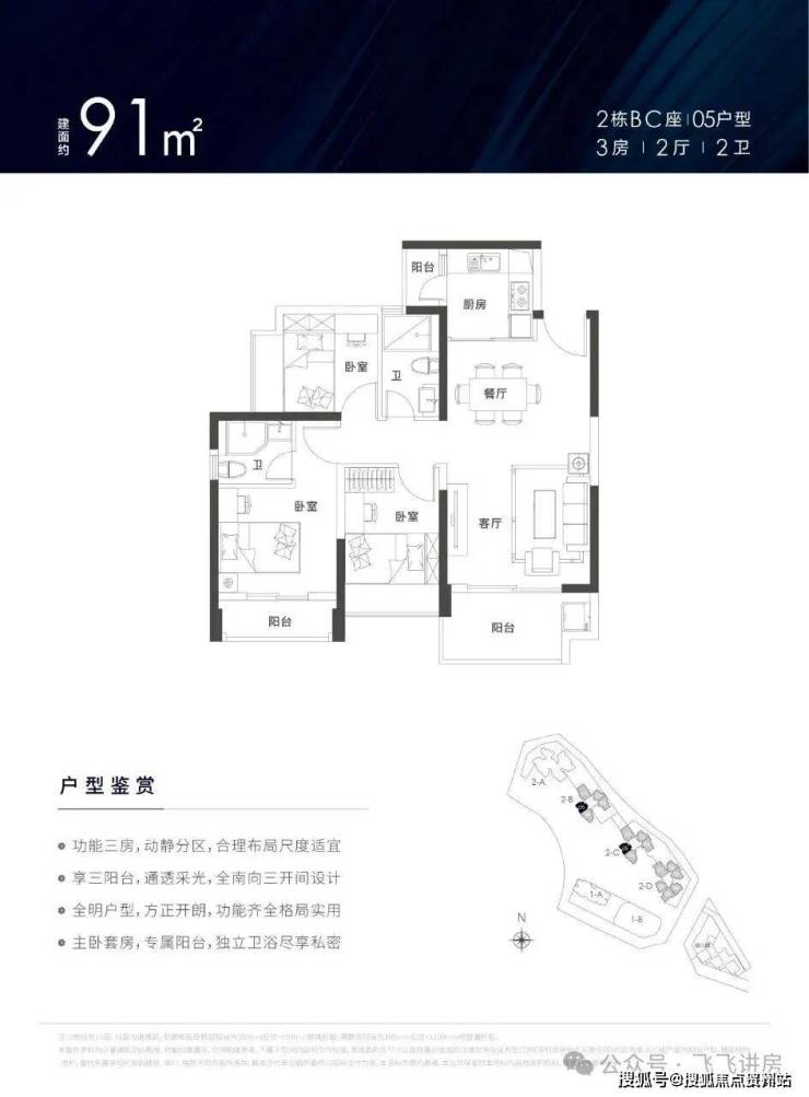 爆款78㎡三房:竖厅+三开间朝南,厨房带小阳台,总价300万出头。