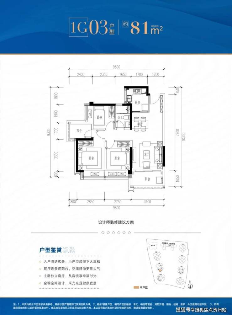 81㎡3房2卫:包含南北通透户型和经典竖厅户型。