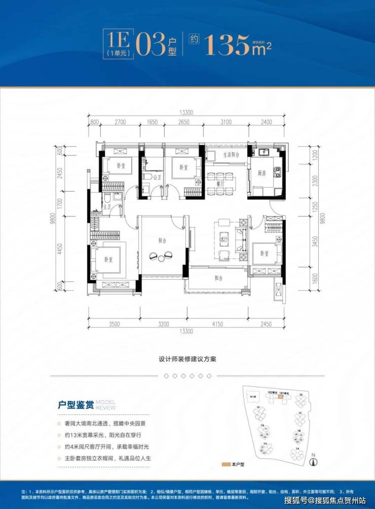 首推1栋B/G/H/E座,共333套,面积约81㎡3房2卫、89-109㎡4房2卫、135m²5房2卫,