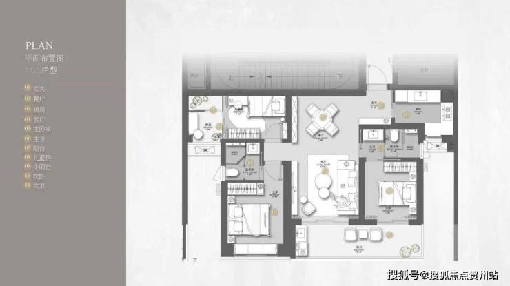 105㎡的3房2厅2卫,双阳台设计,竖厅格局,客厅与卧室连通超大阳台,整体视野比较开阔,看城市景观,主要朝向为西南和东南。