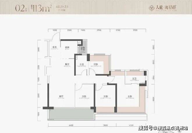 02户型,约113㎡4房2卫
