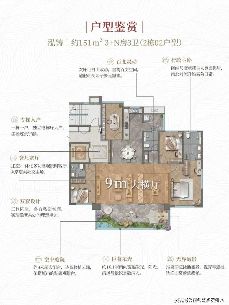 其三,3栋户型为升级版建面约151㎡3+N房,双套间布局,南北通透,3.15米层高,使用率约117%,对空间灵活性和可持续性有着极致追求!