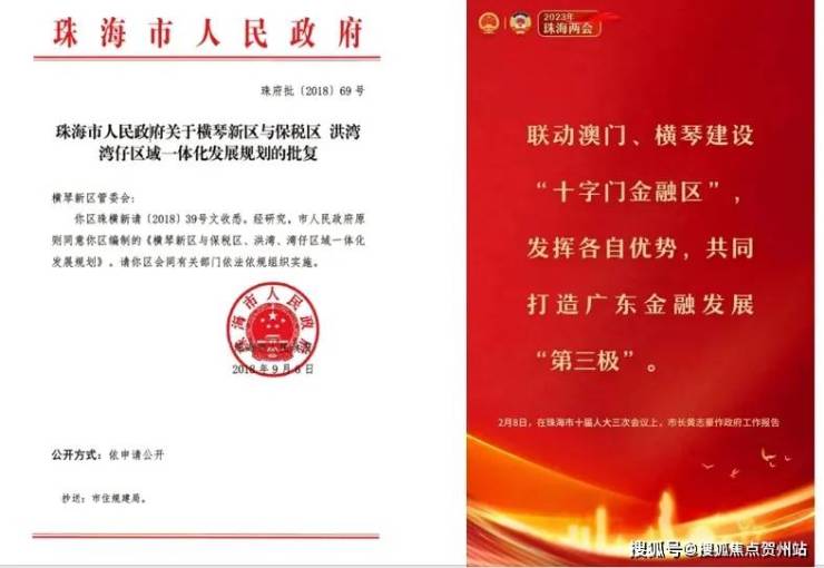 规划横琴一体化片区、双中心等位,南中心横琴金融岛定位商务中心,北中心十字门定位生活居住区,承载横琴居住人口,2022年规划十字门金融区,打造广东金融“第三极”,琴澳新城坐享大湾区政策红利,再次迎来发展机遇