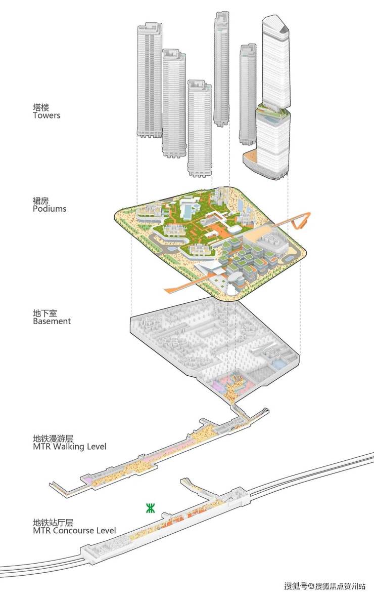 设计以“山海连城、湾区门户、艺术街区”为整体框架,试图将自然景观与人文艺术相融合。具体通过三个策略来实现:一是让高层建筑后退,留出滨海地面空间,形成小尺度商业文化街区;二是规划250米高的超塔作为地标,与周边高楼共同勾勒城市天际线;三是构建立体交通网络,连接地铁、商业与住宅,提升出行便利。