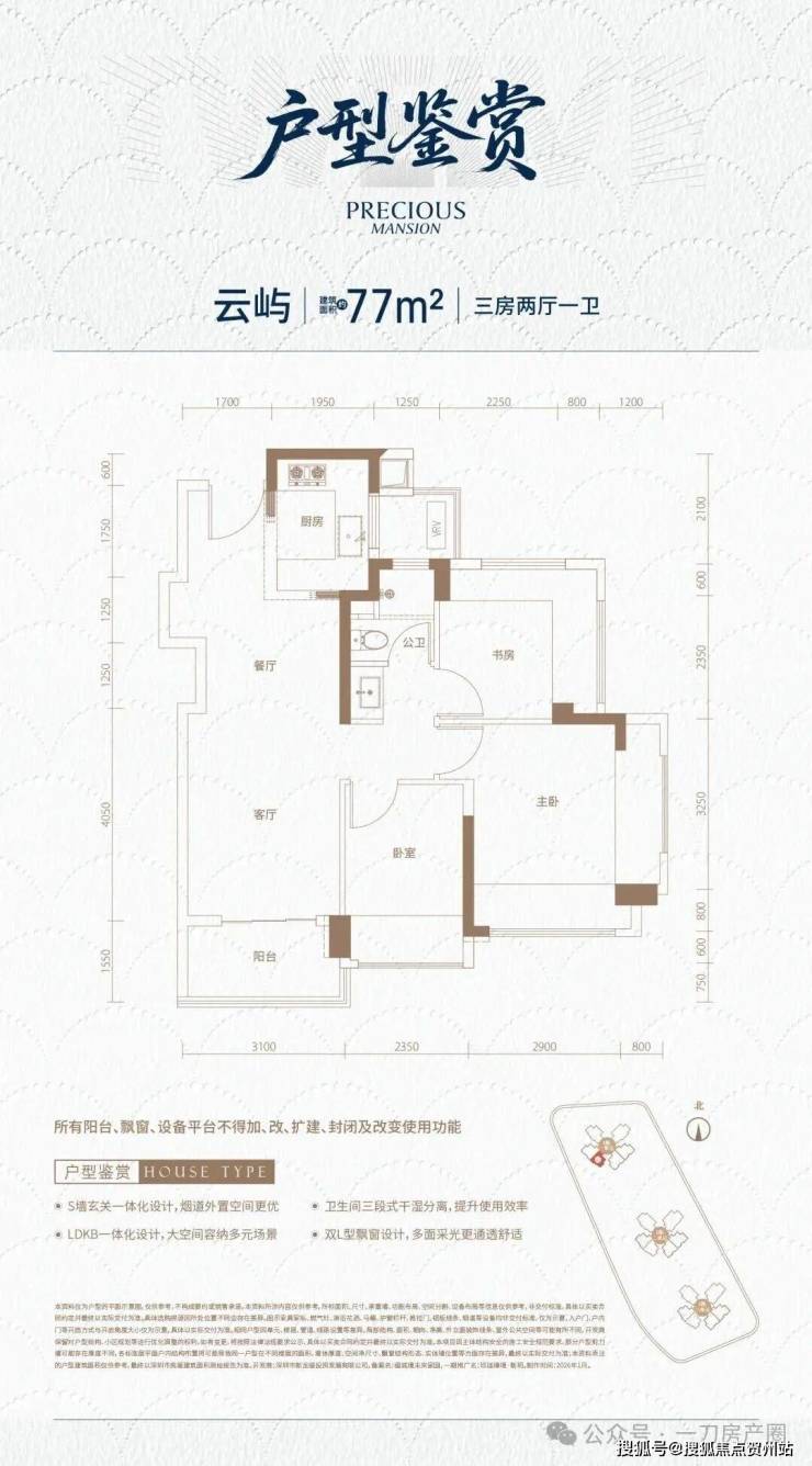 在77㎡面积段做到三房一卫,客厅开间约3.3米,功能性极强,是低总价入住深圳三房的门槛之选。