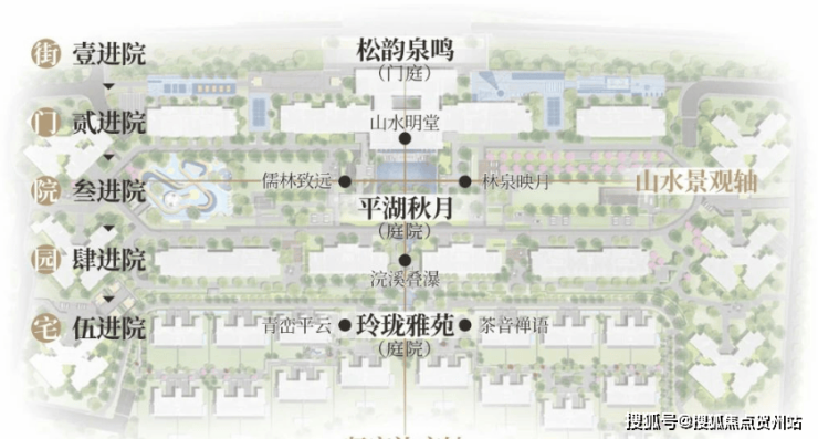▫汲取岭南四大名园精华,布局两轴三庭,五进六园,尽显归家礼序。