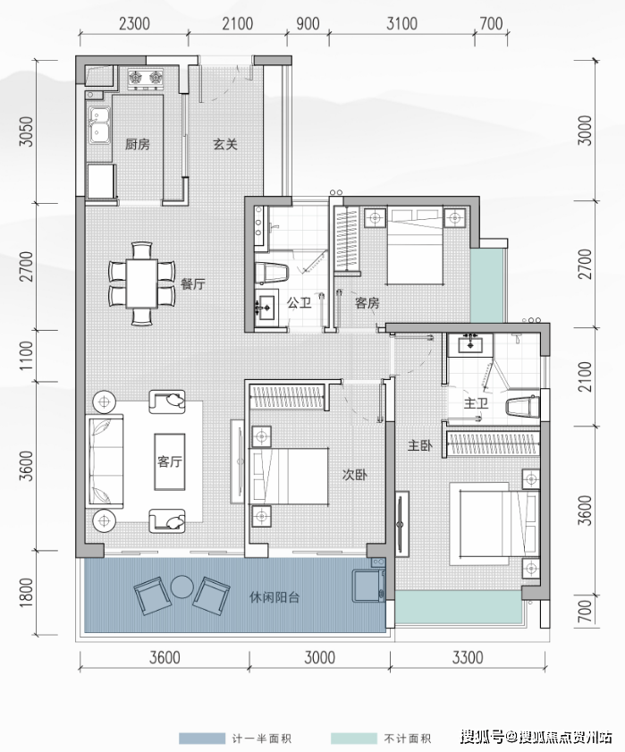 117.59㎡三房两厅两卫,方正大气,高拓实用舒居典范;双阳台设计,通透采光,全明通风;七米大尺度阳台,葱郁林海一览无余;主卧独立卫浴, L 型飘窗,私密惬意;