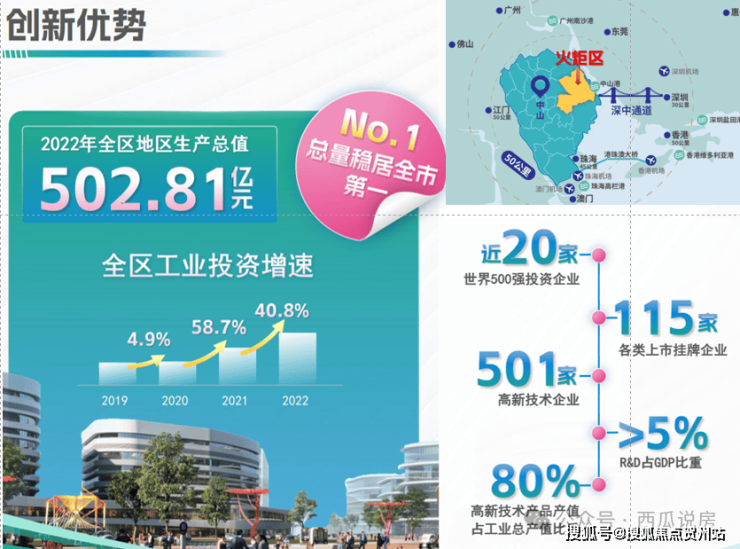 中山火炬開發區作為政府重點打造的環灣產業承接戰略地,到2025年GDP將突破800億,打造全國一流國家級高新區,板塊價值躍升帶動人流物流資金流聚集,未來商機無限。