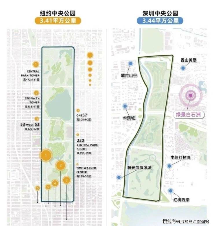 华侨城处于南山和福田中间,而绿景白石洲处于华侨城和科技园中间,因此更靠近南山,距离华润城片区就1站地铁。