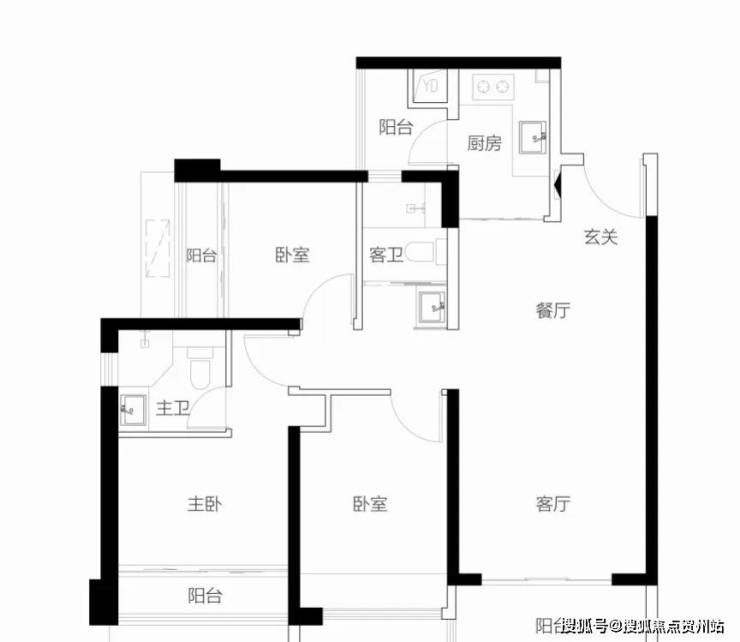 【96-97㎡3房2卫户型】