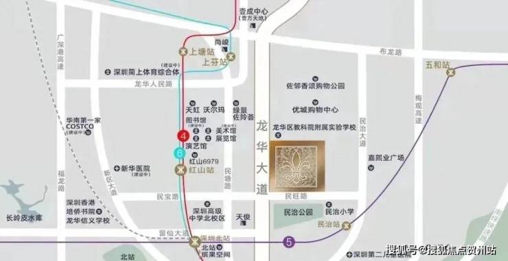 深圳北站高铁枢纽、地铁4/5/6号线已开通,22号线在建中,27号线规划中,已进入招标阶段,深大城际和深惠城际在建中,深大城际民治北站,未来约20分钟到达机场,五地铁+二城际交汇环绕,五横六纵多维立体路网,无界城心繁华