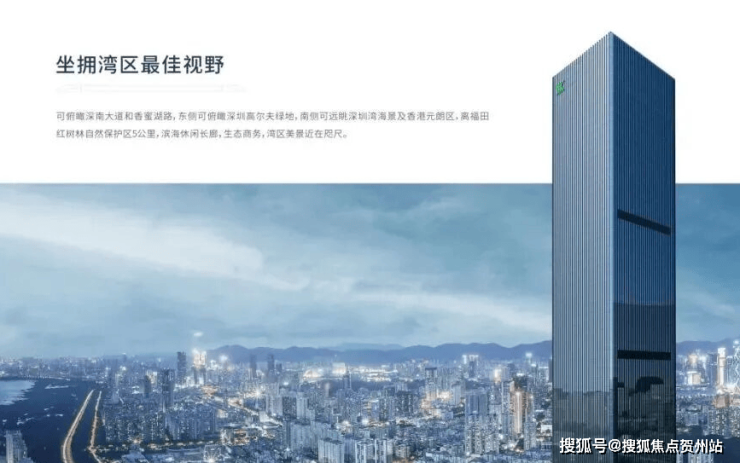 【无敌景观,繁华尽享】深铁置业大厦景观资源丰富,是深圳少有即位于城市核心又具有优质景观资源的项目。项目不仅具有见证城市繁华的深南大道城市景观资源,同时具有香蜜湖湖景资源、深圳湾无敌海景资源,以及塘朗山山体景观,坐山面海,城市繁华中得仁得智。