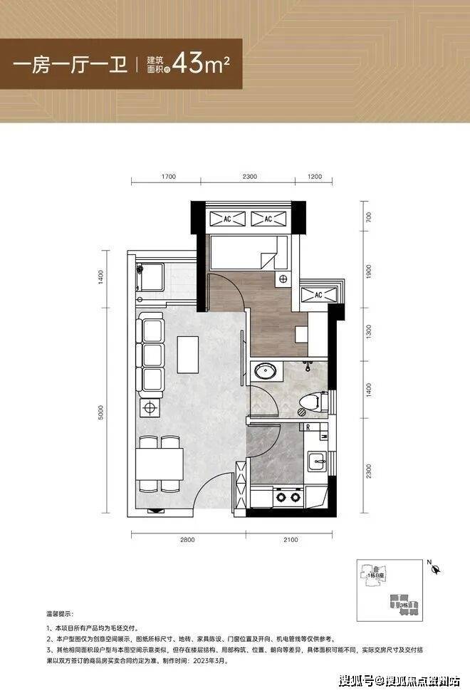 43㎡一房一厅(可改两房)户型