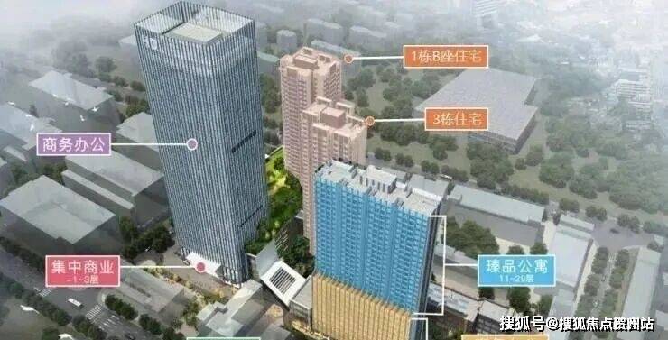 项目是集公寓、办公、住宅、商业等为一体的都会综合体,由4栋建筑组成,1A栋商业,1B栋住宅,2栋公寓,3栋住宅。