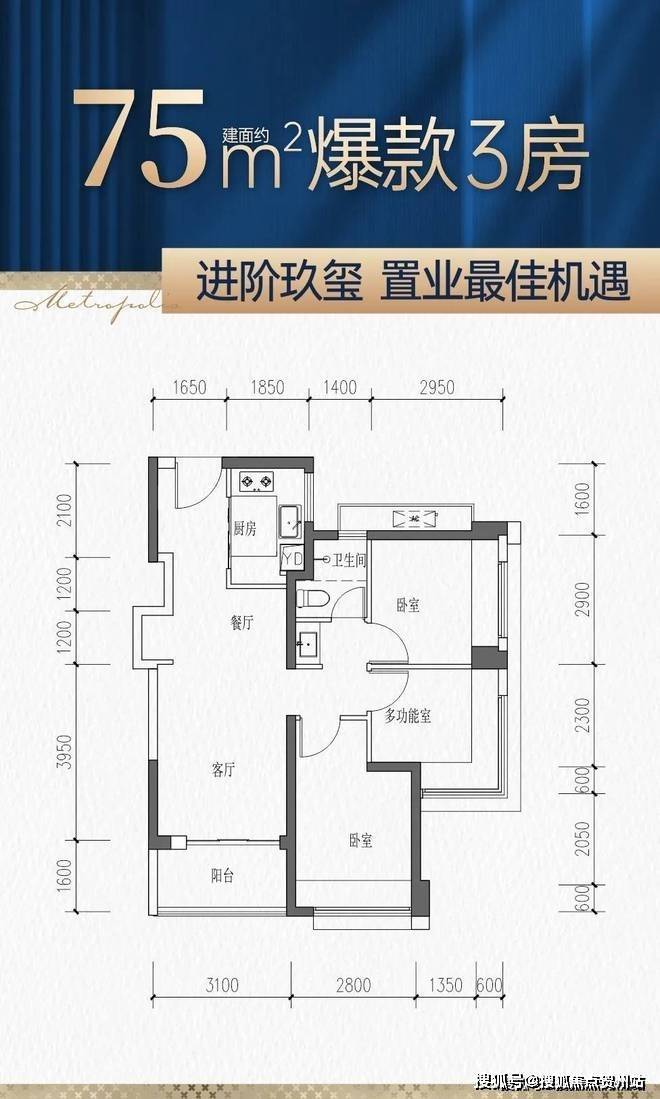 【12栋——首开景观楼王,3梯5户,四房首推劲销9成,居住舒适度超高】建面约75-97㎡全能三房【新品户型鉴赏】