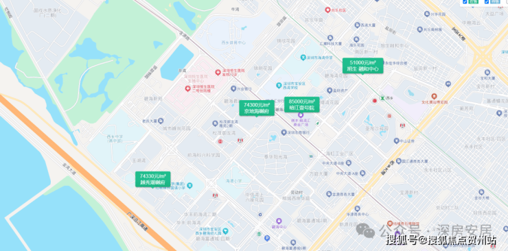 比较知名的标杆二手有松茂御龙湾和华丰前海湾,近期成交均价都在7万/㎡左右。
