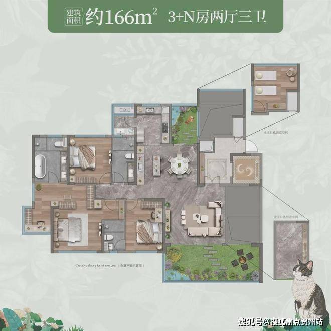 建面约166㎡大平层户型