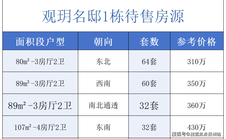 光明城中建观玥名邸计划2025年9月入市,加推1栋188套房源,包括80-89m²的3房2卫和107㎡的4房2卫。新增89平南北通透户型,得房率最高。参考前期5栋均价4.23万/平,预计新开盘均价3.9-4万/平,3房300万起,4房410万起。预计2027年3月精装交房。