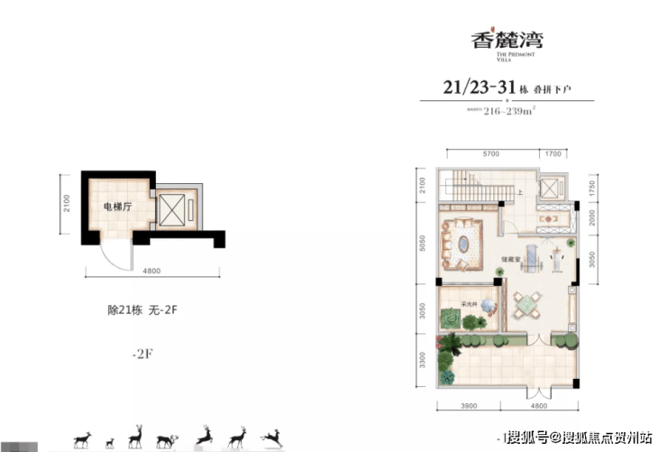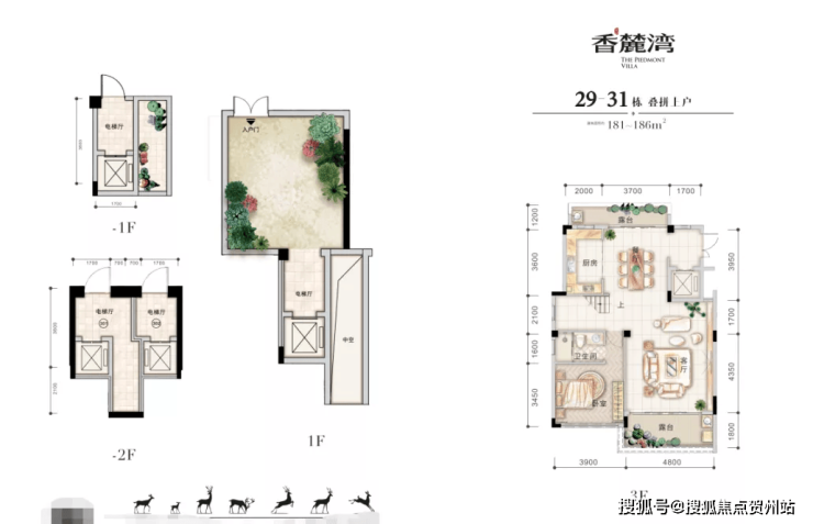 在售户型面积:叠拼182㎡ 3房2厅3卫,