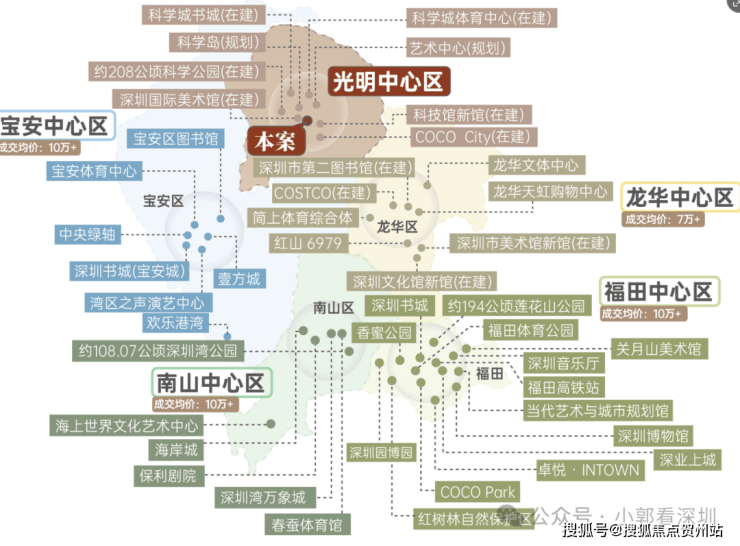 地铁配套:项目距离6号地铁线“光明站”约600米,步行需要11分钟左右,2站到凤凰城站,可以换乘13号线,4站到光明城站,这里可以换乘光明城高铁站/6号地铁线,6站到宝安上屋站,11站到南山西丽留仙洞,14站南山高新园,18站到后海。