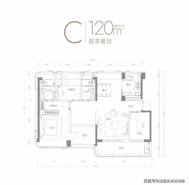 约120㎡户型,玄关处多一间房,跟客厅共享6.2米阔景阳台。这个空间可以做成书房或者娱乐室,工作休闲都有一处安静的空间。还能跟客厅打通,还形成一个开间6.2米的超大横厅。主卧套房尺度达到约3.4米*4.6米,带步入式衣帽间和独立卫生间。