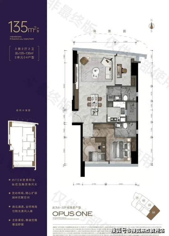 · 128-135㎡三房两厅两卫:舒适海景户型,单边位设计,折后总价 420-630 万,单价 32000-45000 元 /㎡。