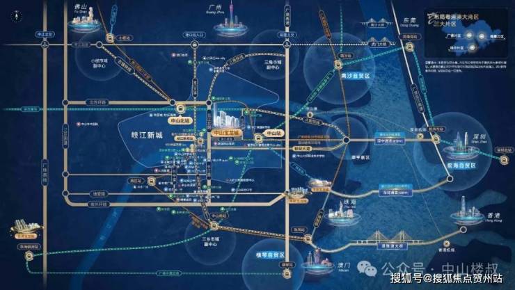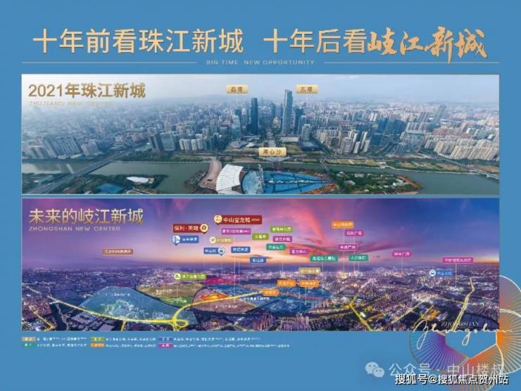 岐江新城之于中山,恰如珠江新城之于广州。珠江新城是广州天河CBD重要组成部分,国际中央商务区之一,广州总部经济最为密集区域。岐江新城以“石岐+东区”总部经济区为核心,中山宝龙300米和富元498米超高层对标牌珠江新城西塔/东塔,打造中山未来CBD中心,营造宜商宜居的空间。