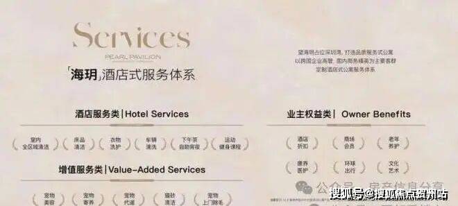 望海玥针对公寓产品所打造的「海玥」酒店式服务体系,对标伊敦「壹棠」,打造品质服务式公寓,主要客群为跨国企业高管、国内商务精英。