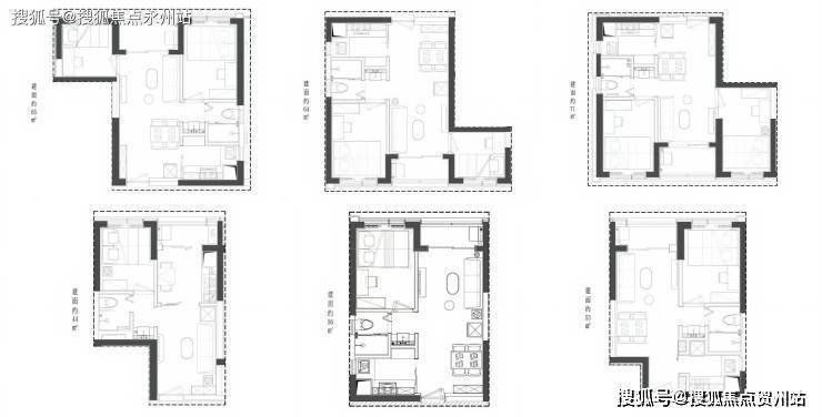 目前在售的商务公寓户型包括44㎡的1房、53-56㎡的1房以及63-65㎡和71㎡的2房2厅1卫。