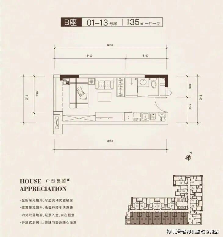 在售产品:建面约35-98㎡1~3房;【B栋40年产权商务公寓,A栋写字楼只租不卖】