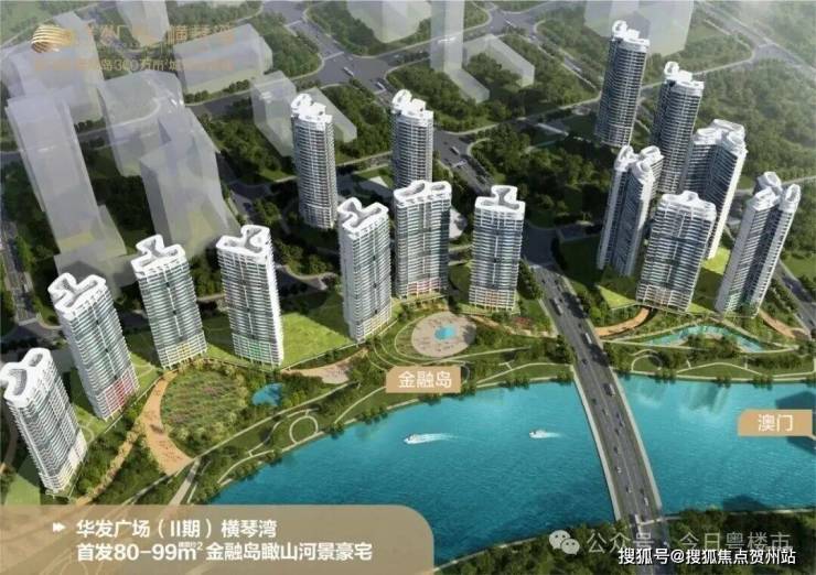 华发广场Ⅱ期横琴湾项目位于横琴金融岛西,是难得的一线河景大盘。项目占地面积约9万 m²,总建面约33.4万m²。