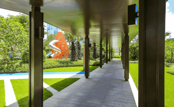 由国际顶级团队担纲设计,匠筑东南亚风情园林。小区入口处,超30米迎宾水景,搭配阵列式加拿利海枣,彰显奢华归家礼遇;超800㎡阳光大草坪,融合居住空间与自然的和谐统一;风雨连廊则连接每栋入户大堂,从门口到家楼下无缝接驳,365天关注品质生活。