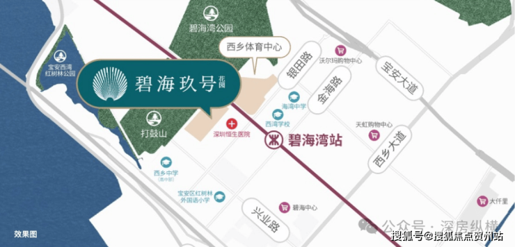 紧邻地铁11号线碧海湾站(约600m),1站机场、2站前海湾、4站后海、6站福田。