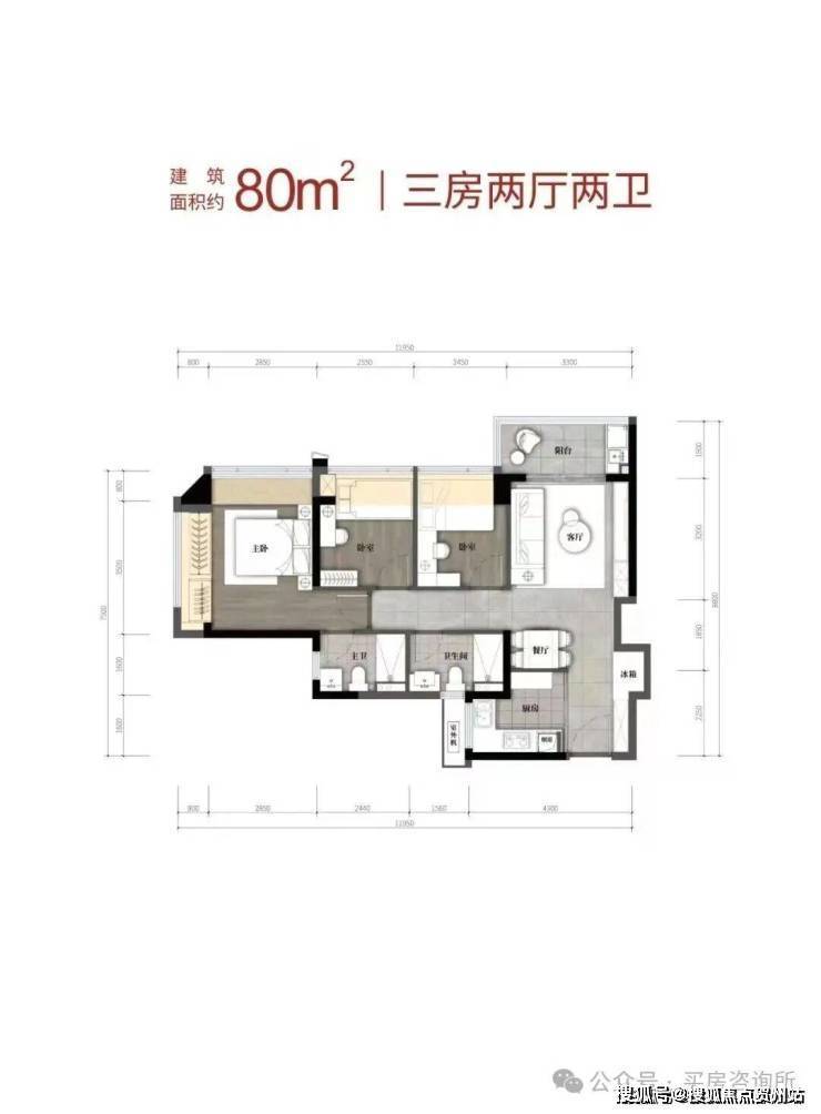 80㎡的3房2厅2卫,折后总价253-270万/套,单价3.16-3.36万/㎡