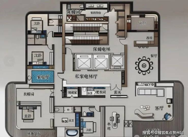 5梯2户:近乎私梯的配置(平均2.5梯服务1户),出行便捷无忧。适合追求极致空间体验与顶级服务的家族或精英领袖。