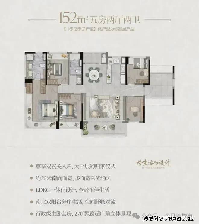 首批仅推出248席,户型面积为建面约125㎡4房户型,以及建面约152㎡5房户型,均约110%实用率。