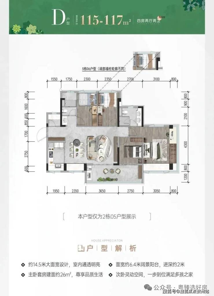 117㎡四房二卫:606-653万,南北通透,约13㎡新规大阳台,尊享舒适;