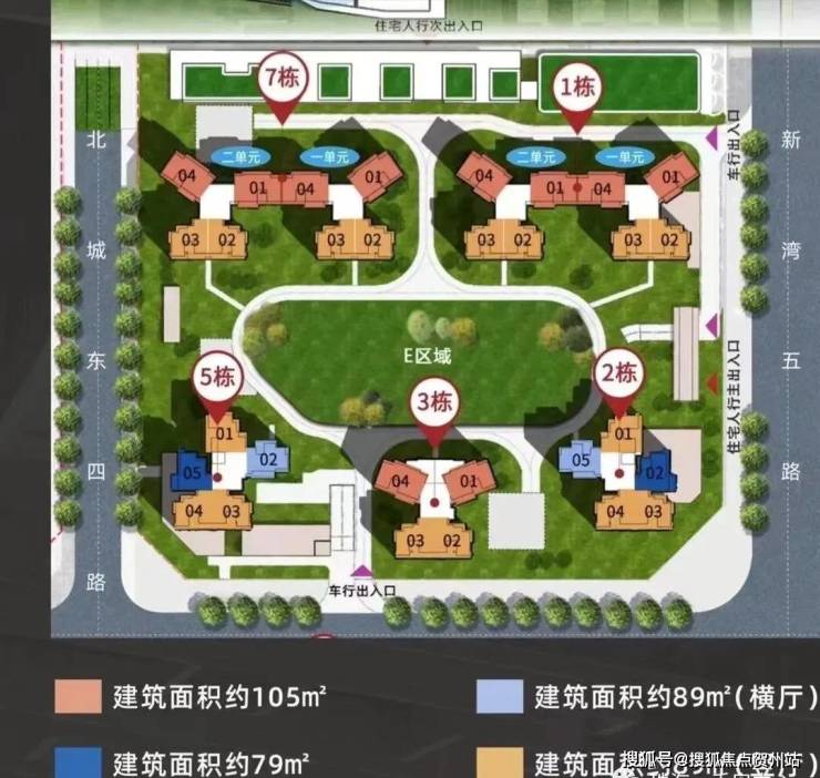 在售面积:79m²(3室2厅1卫)、89m²(3室2厅2卫竖厅)、89m²(3室2厅2卫横厅)、105m²(4室2厅2卫)