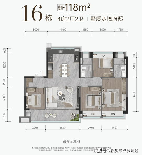 户型:高层产品建面约 91-118㎡,为三至四房户型;洋房产品建面约 129-143㎡,为四房双套卧户型。