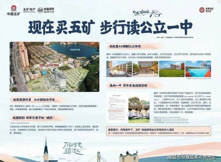 约20米即惠州一中公立学校(已开学),涵盖小学30班制,初中15班制,配置学生宿舍和食堂,室内泳池/风雨篮球场/羽毛球场等。此外,还规划建设2所幼儿园,打造家门口十二年一站式精英教育配套,同时临近惠博中学、博罗中学等。