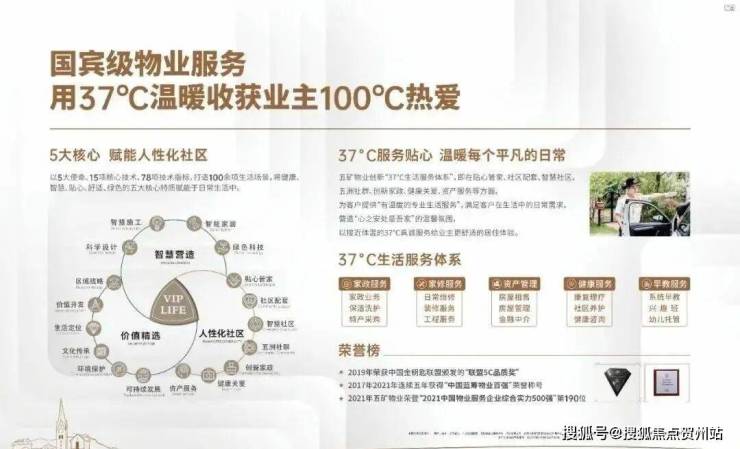 五矿物业是中国五矿旗下全资国有企业,获得国家物业服务一级资质、2017年荣获中国蓝筹物业企业称号,2019年12月荣获中国金钥匙联盟颁发的“联盟5C品质奖”。以“37°C服务,给心安个家”为服务理念,构建社区五大增值服务体系:家政服务、家修服务、资产管理、健康服务、早教服务,全面提升业主幸福感。