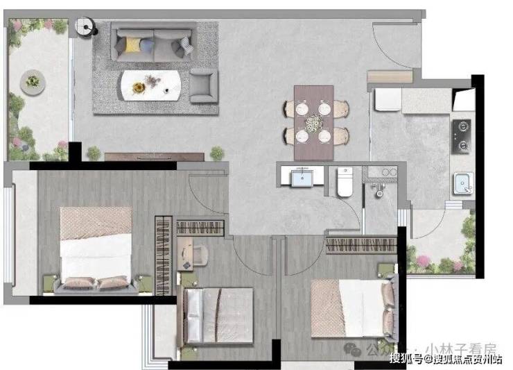 高实用空间:动静分明 生活井然有序L型厨房:动线流畅 让烹饪更自在客餐厨直连:通透无界 全家欢愉的生活场双阳台设计:辽阔视野纳藏无限风光