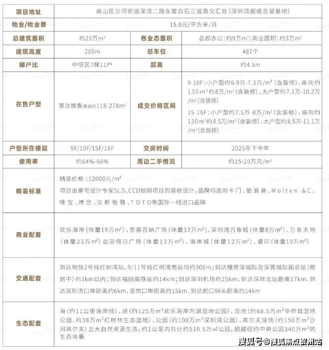 超总壹号位于深圳湾超级总部基地内,该片区是深圳唯一一座以“超级”命名的总部基地,也是深圳唯一一个全南向拥有一线海景资源的总部基地,总体规划投资约3000亿元,单位面积投资密度约10倍于前海核心区,有着“深圳曼哈顿”之称。