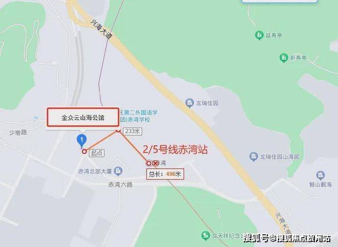 「金众云山海公馆」临近地铁2/5号线赤湾站,步行距离400多米,1站到太子湾,2站到铁路公园(前海),接驳深圳首条环形地铁15号线,到前海、桂湾、宝中,非常便捷。