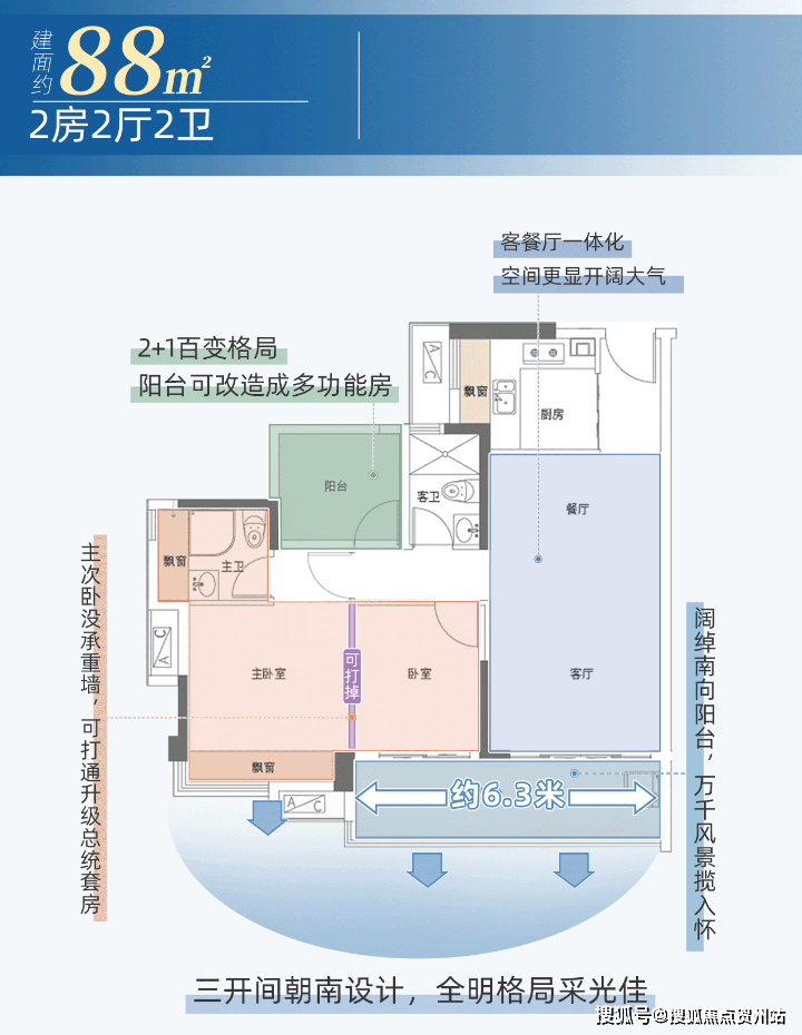 项目在售产品涵盖建面约88-200平方米的三至四房,主力户型包括88-117平方米的三至四房以及200平方米的大平层。其中,建面约89平方米三房户型采用三开间朝南设计,建面约117平方米四房户型配备南北双阳台,建面约200平方米大平层采用六开间朝南设计,实用率高达100%,配备约7.8米大横厅和约13.4米跑道式景观阳台。