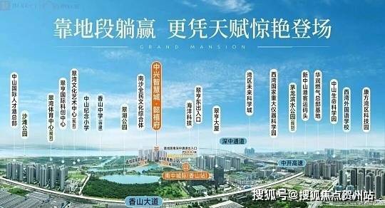 项目占据粤港澳大湾区几何中心,距离深中通道出口仅800米,深中通道通车后约30分钟可达深圳前海。项目紧邻南中城际香山站(步行5分钟),未来可快速通达广州、珠海等城市。周边汇聚"5机场+4通道+4高速+4地铁+3高铁+2快线+1码头"的立体交通网络。