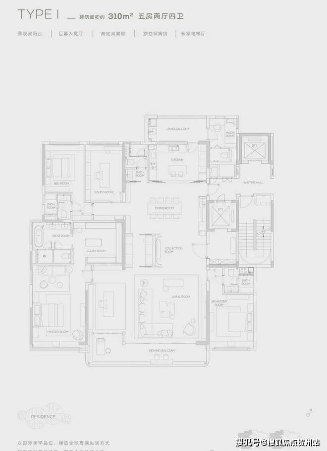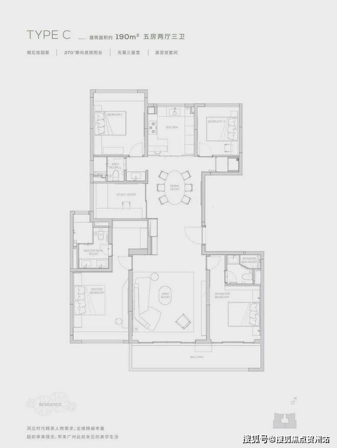 在售户型:145㎡三居、174㎡四居、190m²五居和260及320m²五居