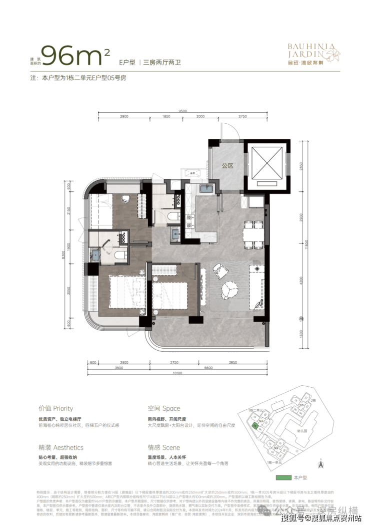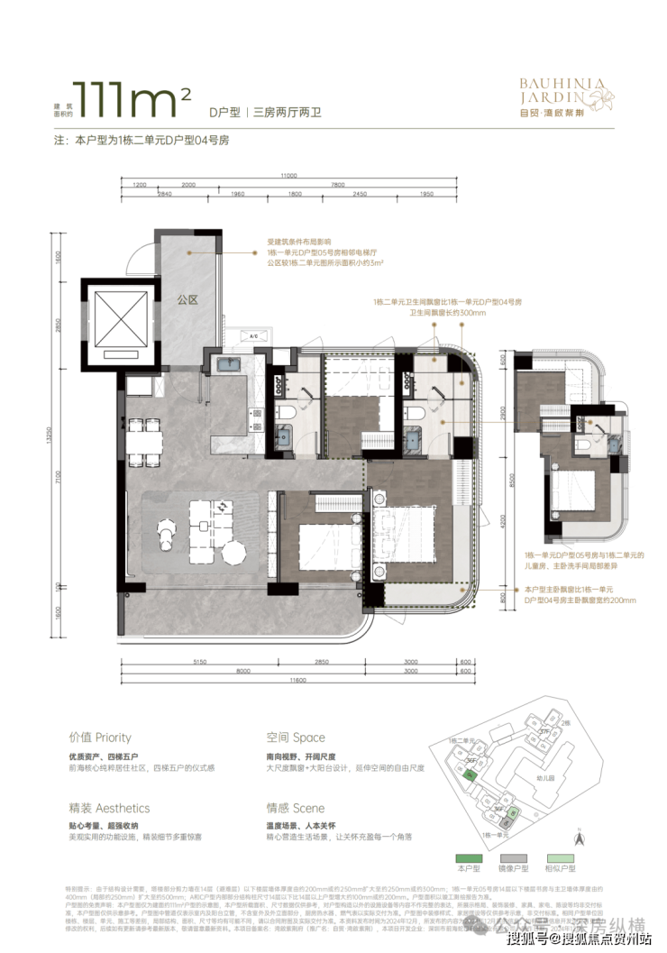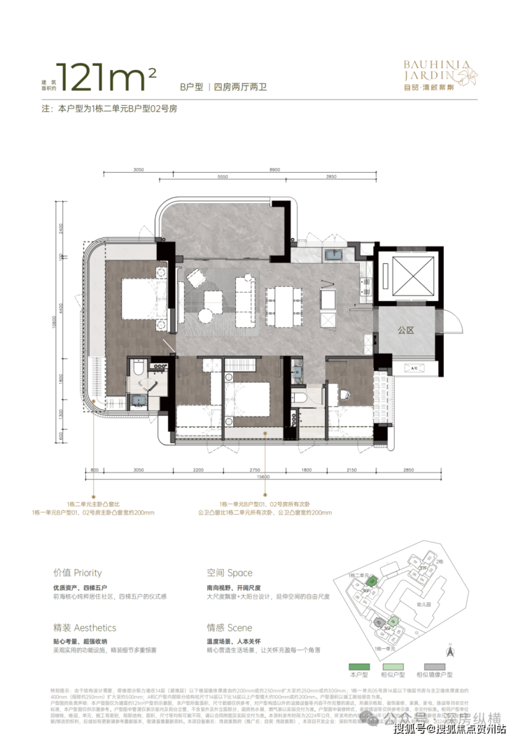 • 270°弧形无柱大尺度飘窗、大宽厅、大阳台,带来更多使用空间。