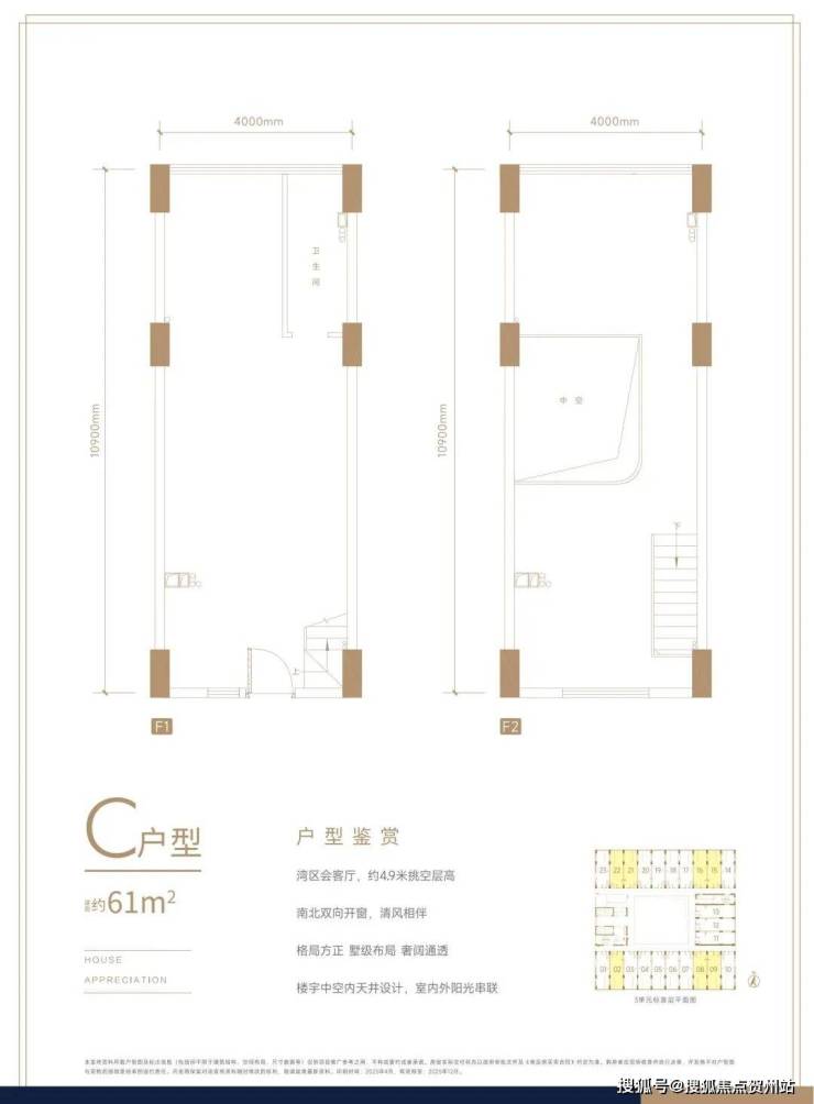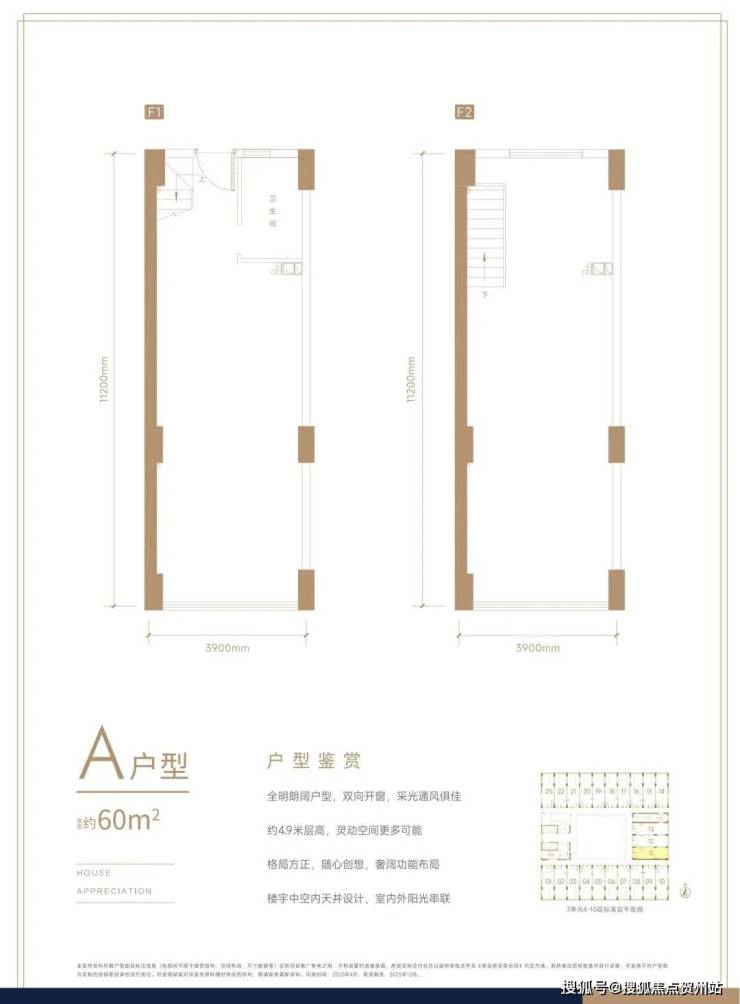 ⭐在售户型:约60㎡ 约4.9m双层空间